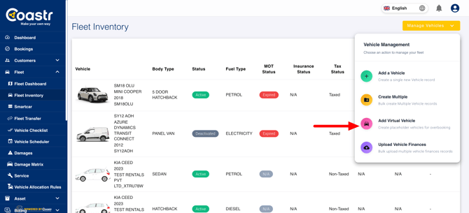 3. You'll not be able to complete the vehicle check-out on the Coastr for Partners mobile app for a booking with a virtual vehicle. Therefore, you'll either need to eventually add a physical vehicle to the Fleet Inventory and then update such bookings with the physical vehicle or any other existing vehicle to be able to fulfil the booking.