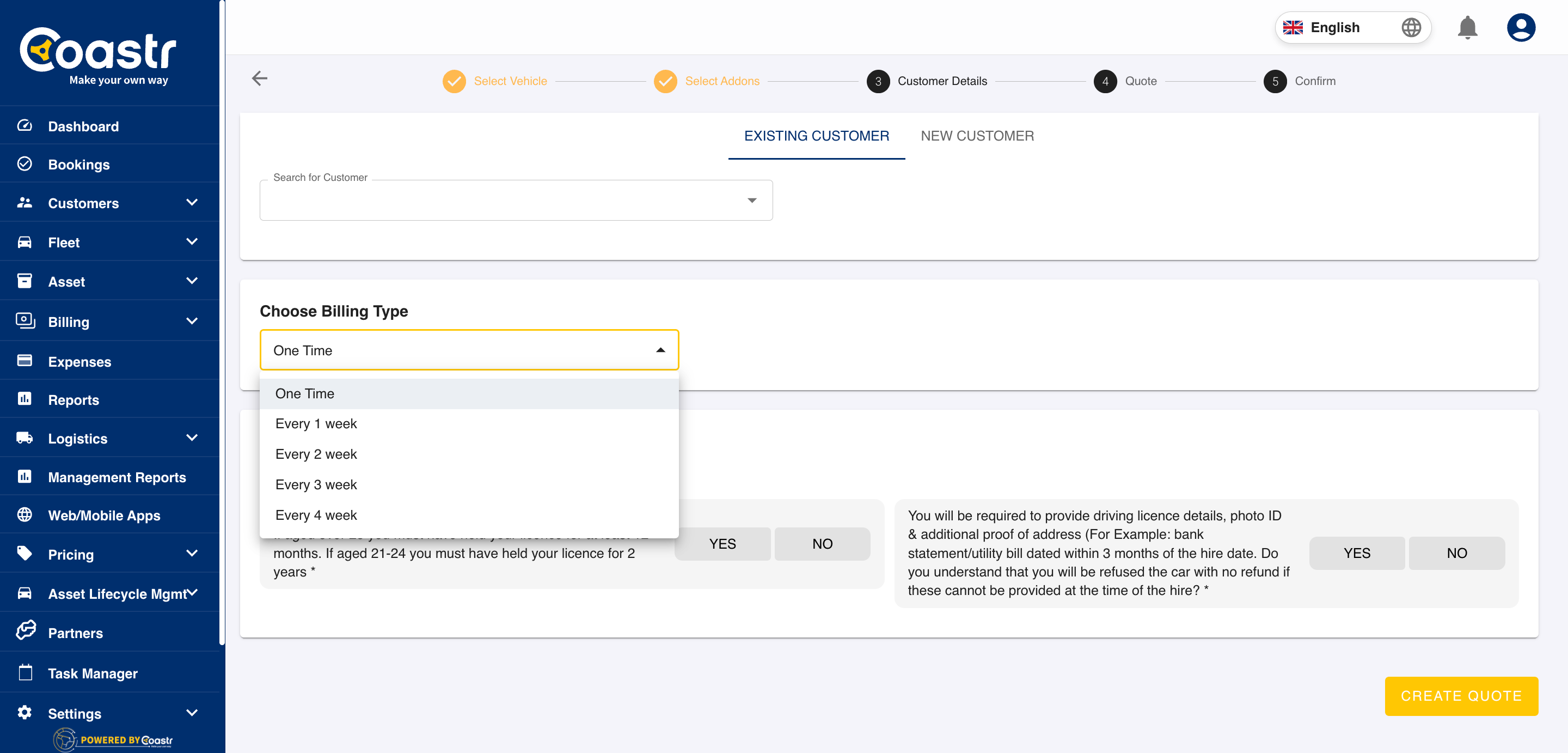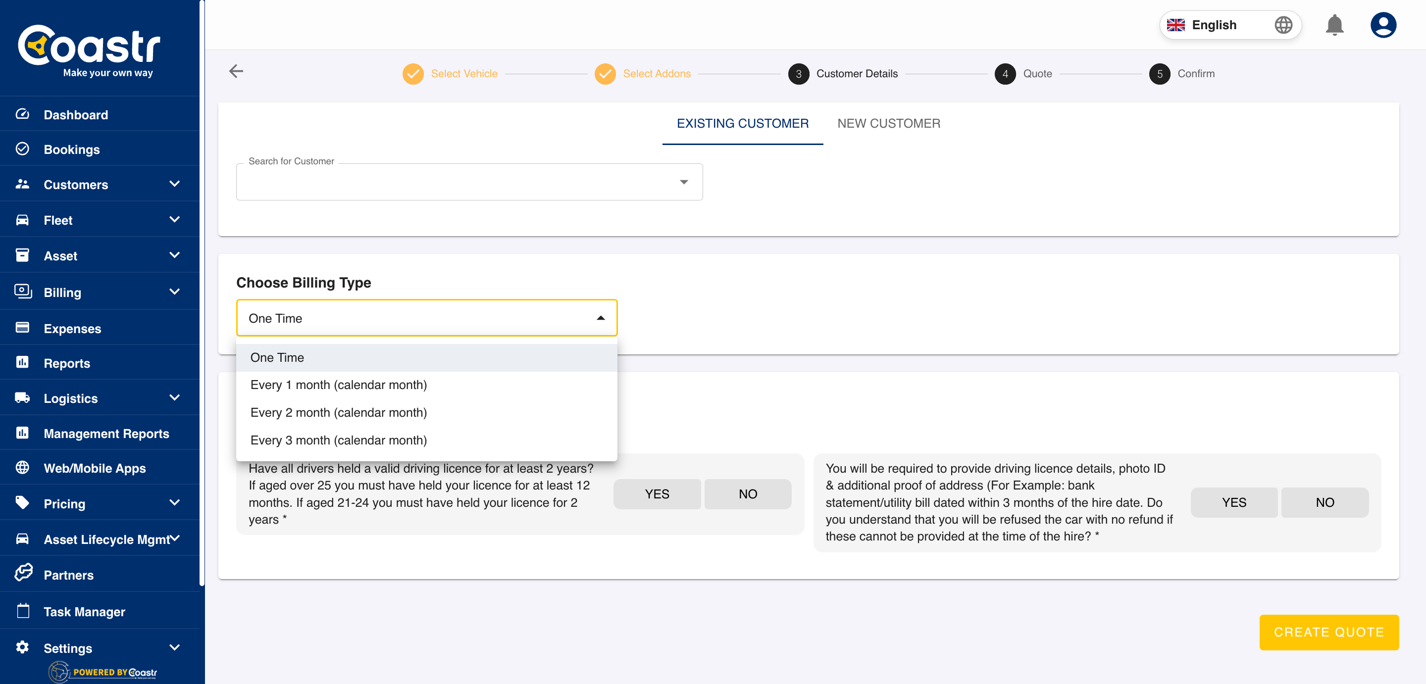 Step 7: After selecting the billing type, click on the Create Quote button.