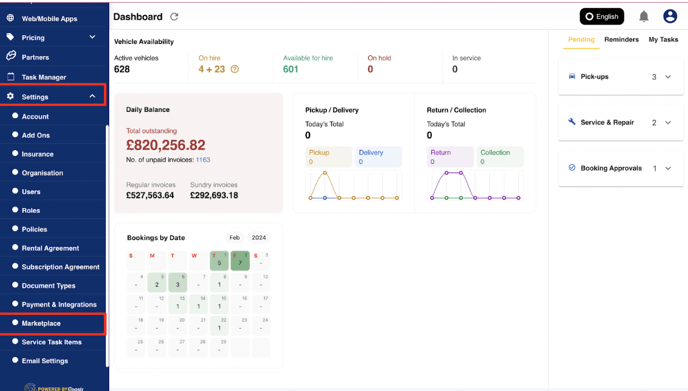- On the left-hand side, click on Settings, then click on Marketplace.