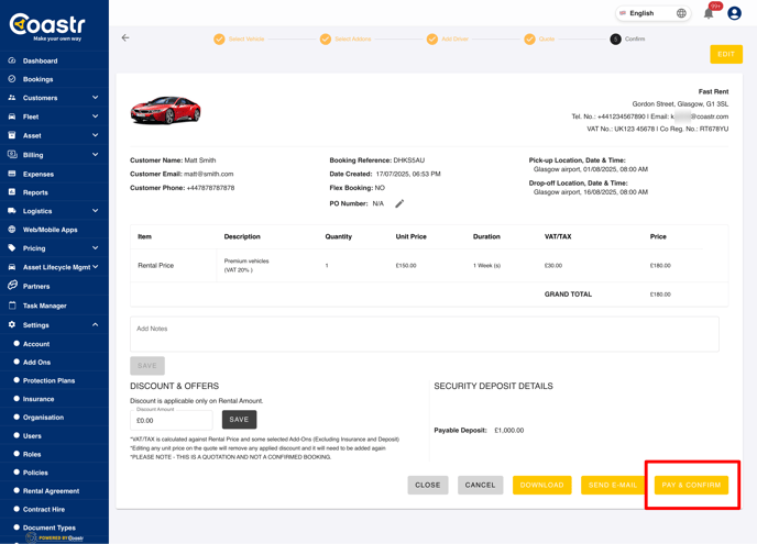 Step 2: Create a quote and click the 'Pay & Confirm' button to proceed.