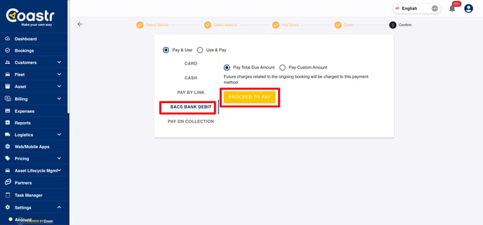 Step 3: Here, choose BACS Bank Debit and then click on the 'Proceed to Pay' button.