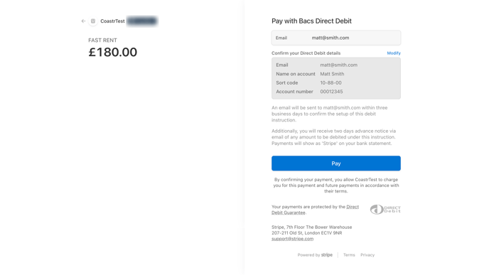 BACS (Bankers' Automated Clearing System) Direct Debit is a popular type of bank transfer in the United Kingdom that is primarily used for recurring transactions. First established in 1968, the BACS system allows businesses to collect payments from customers' bank accounts after the customers give their permission. It has become a standard method for managing regular payments such as utility bills, subscriptions, and memberships.Coastr supports BACS Direct Debit payments via our payment integration with Stripe. Stripe users in the UK can accept BACS Direct Debit payments from customers with a UK bank account.
