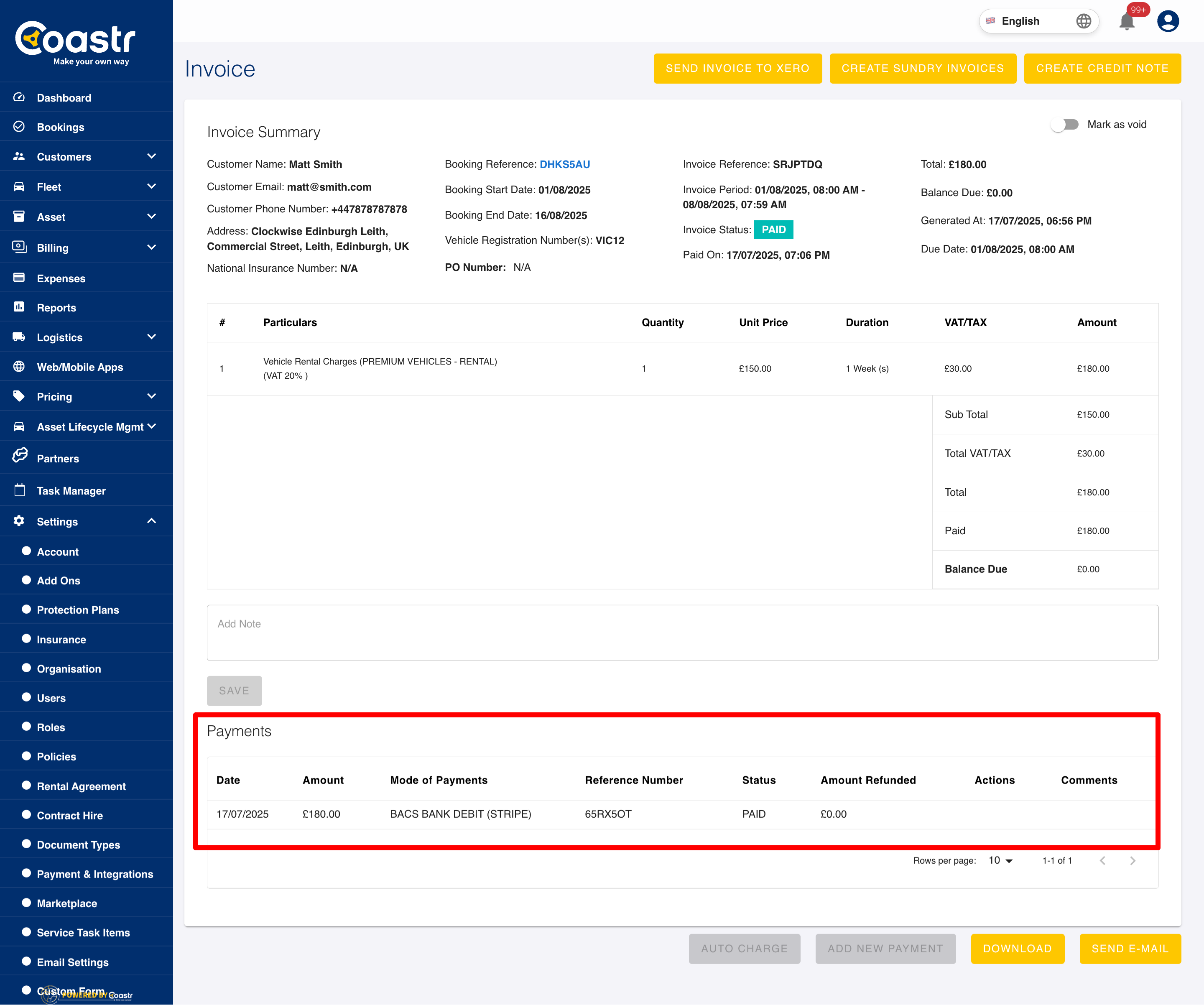 That's it. You've successfully recorded a BACS Direct Debit via Stripe on Coastr.